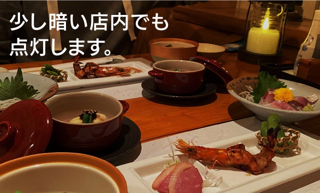 少し電気の暗い居酒屋などのお店でも試しました。ちゃんと点灯しますよ!