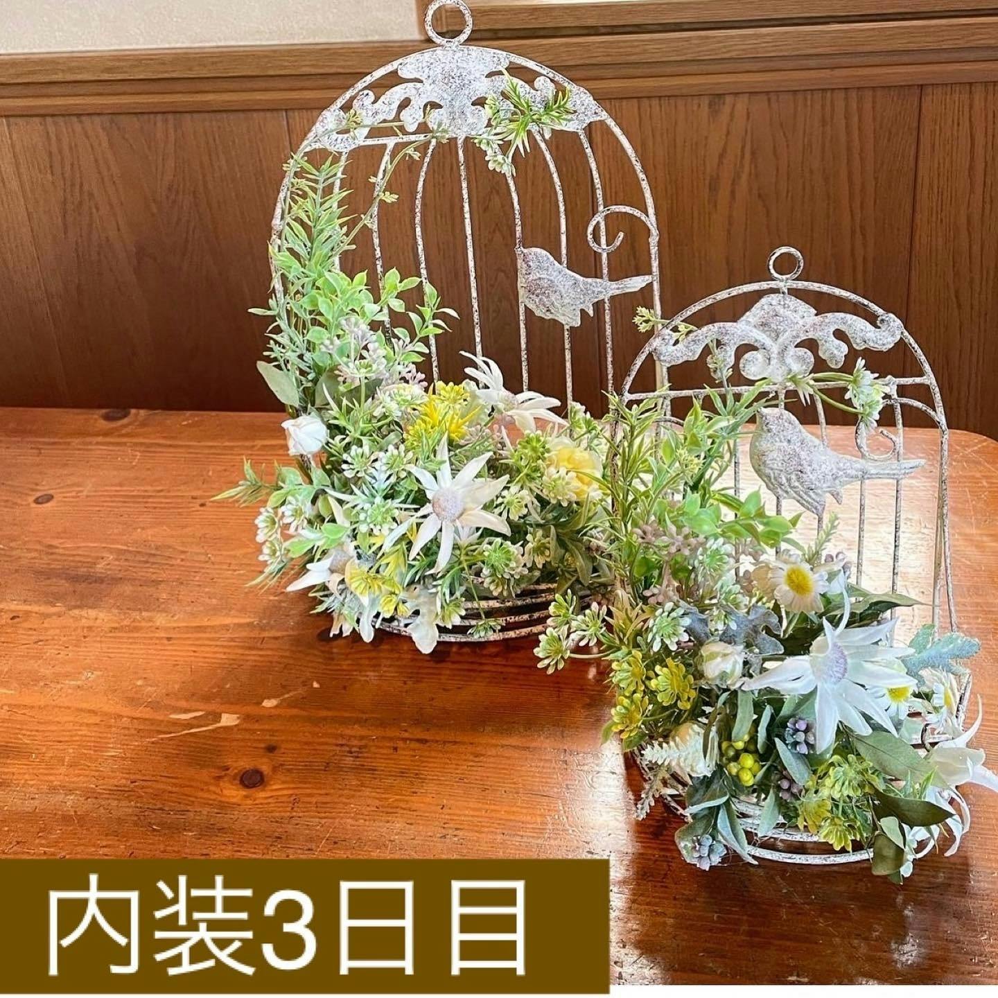 1月10日は内装3回目で、素敵な鳥かごのアレンジが出来あがりました。