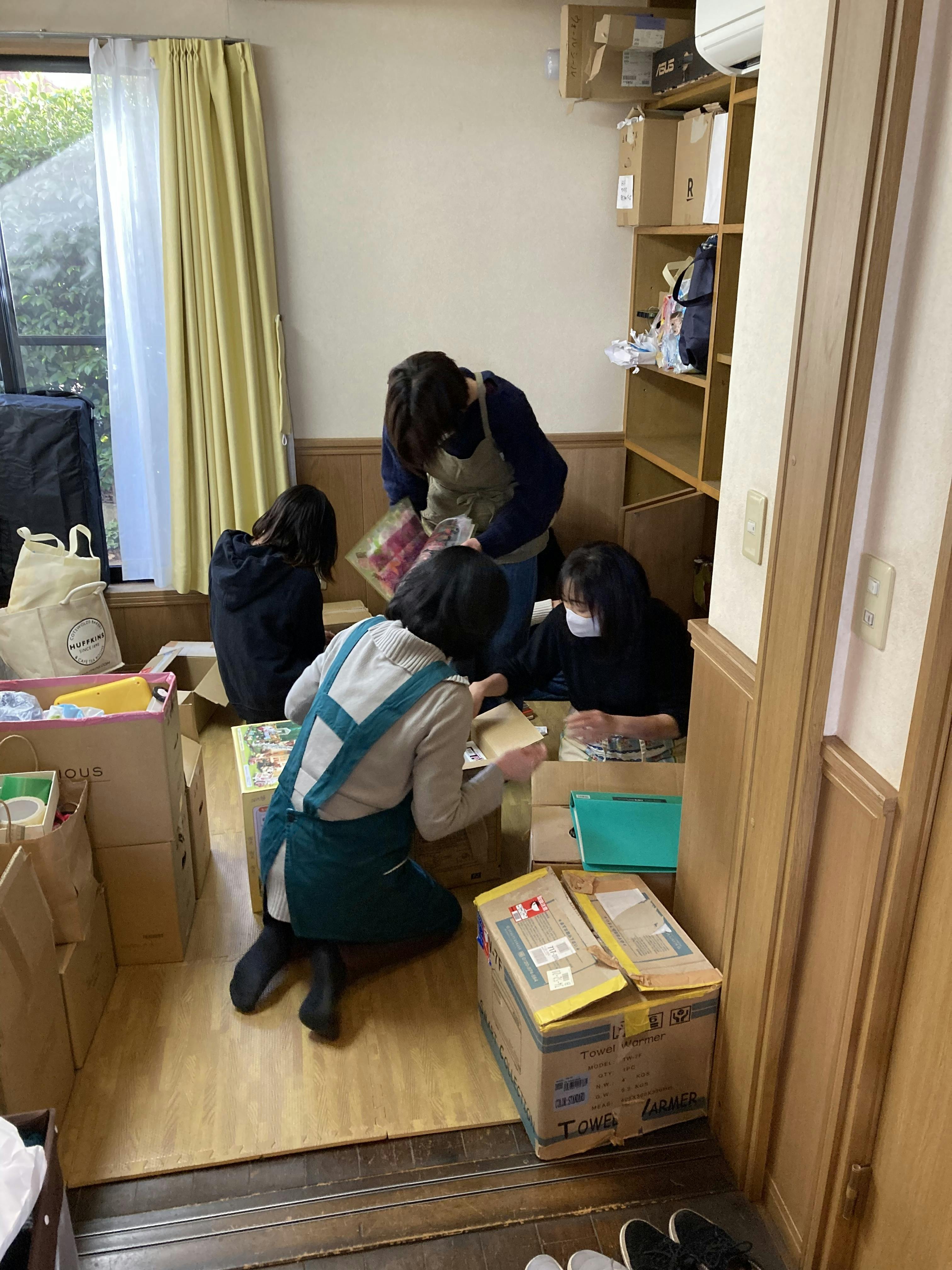 その5人で足の踏み場もないぐらいの奥の部屋を素敵に片付けてくれました(3/1オープンの3階の部屋の分の備品もあり)