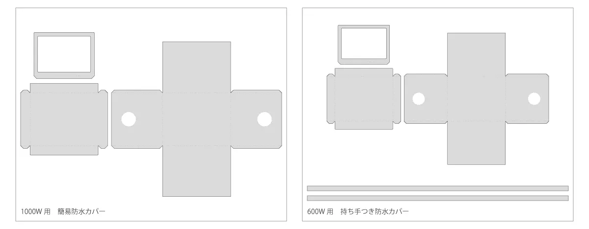 現場作業時に突然の雨、そんな時にもとりあえず安心。テント生地を使用した簡易防水バック提供。(現在、試作中。商品が仕上がり次第、発送いたします。1000Wタイプはカバーとなります。)