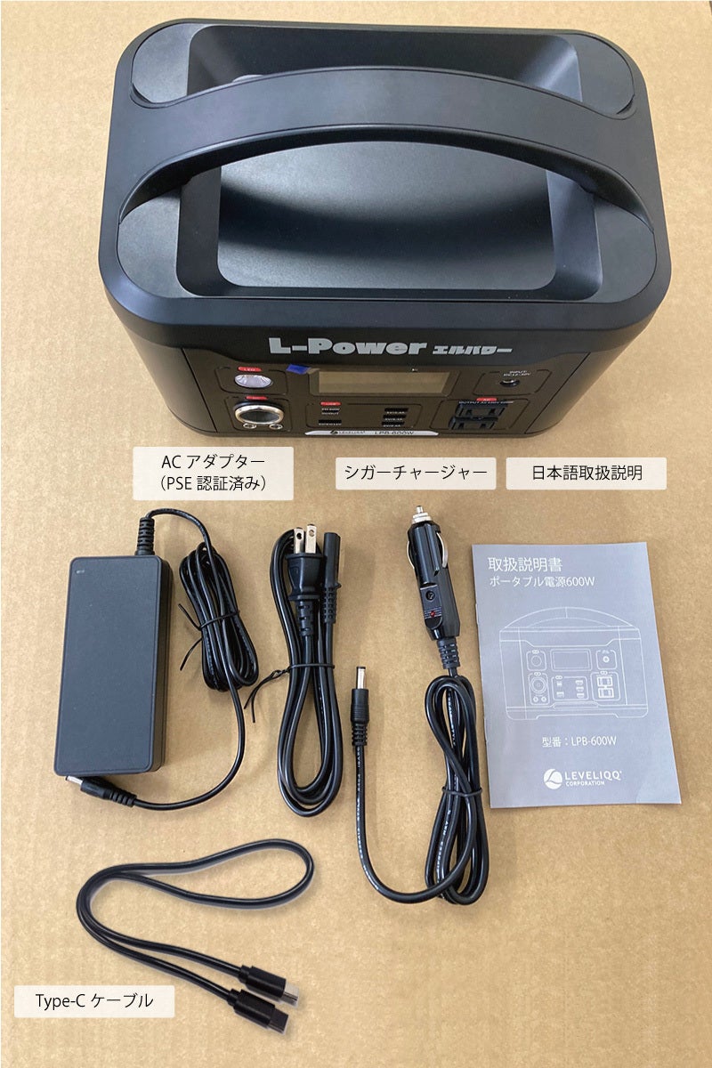 ACアダプター(PSE認証済み)、シガーチャージャー、Type-Cケーブル、日本語取扱説明書