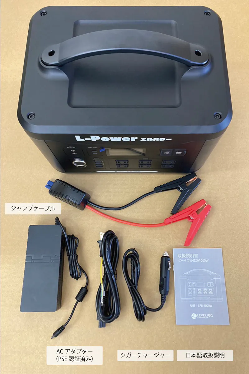 ACアダプター(PSE認証済み)、シガーチャージャー、ジャンプケーブル、日本語取扱説明