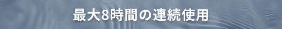 電池の交換が不要、2000mAhバッテリーを内蔵し、1回のフル充電で最大約8時間連続使用可能です。