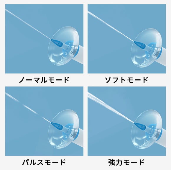 汚れの程度やお好みに合わせて4段階の水圧モード(ノーマル・ソフト・パルス・強力)を切り替えることが可能です。初めてご使用の方はソフトモードからおすすめします。