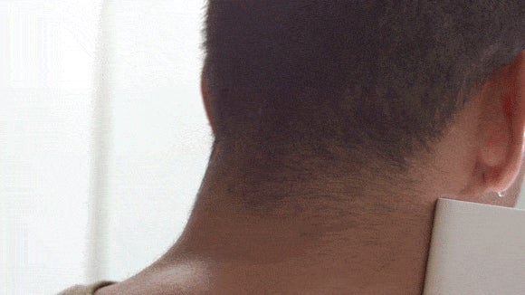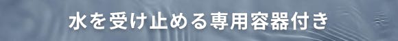 使用時に出てくる水を受け止めるために、肩に載せやすくデザインされた専用容器も付属しています。