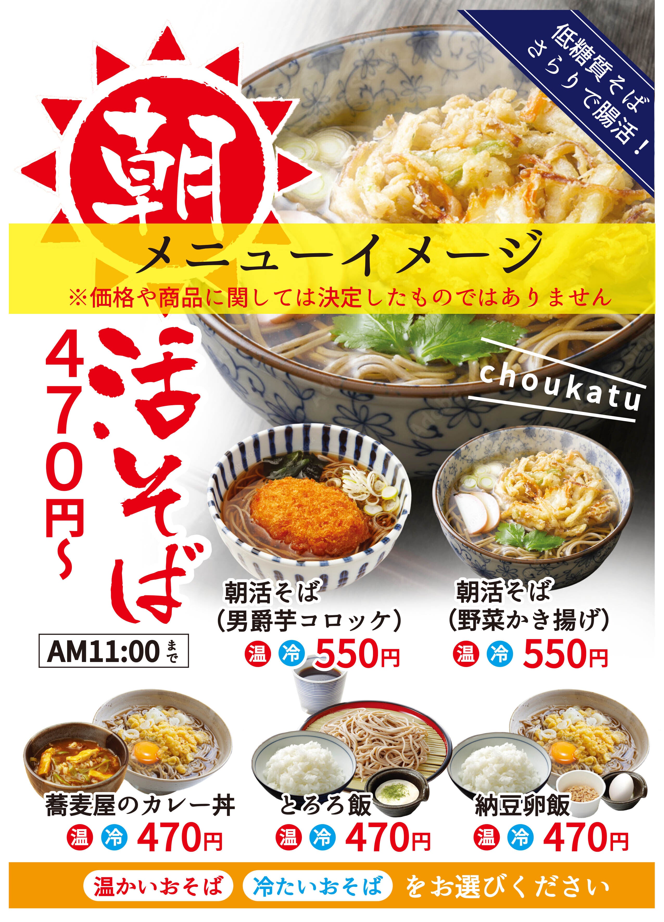 今回の活動報告は、新店舗で新たにチャレンジしようと検討している「朝(腸)活メニュー」についてです。これまではAM11:00からのオープンで営業していましたが、昨今コロナ禍の影響なのか外食での朝食ニーズが増えているように感じます。しかし地域の飲食店では、まだまだ朝食を食べられるお店が少ない現状があります。そこで、このような朝食ニーズに応えるべく「蕎麦屋のカレー丼」をはじめとした朝食メニューを検討しております。また、健康的な食事を採っていただきたいという想いもあり、お蕎麦には食物繊維たっぷりの「低糖質そばさらり」を使用する方向で検討してます。なので「朝活」に「腸活」をかけたコンセプトになってます。