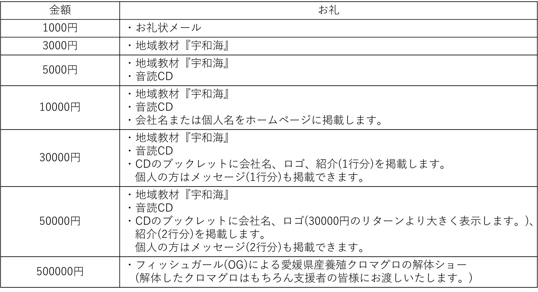 7. 支援プランとリターン