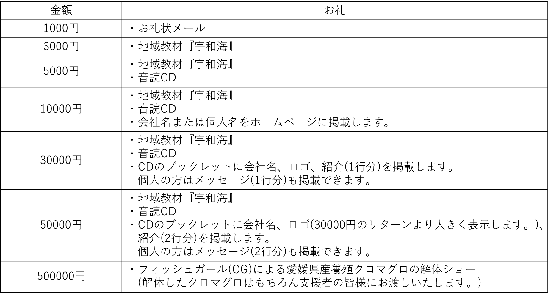 ご支援いただいた資金を基に出版社に製本を依頼します。その後、地域教材『宇和海』を宇和島市内の中学校の全ての教室に配り、いつでもこどもたちが手に取れるようにします。また、音読資料をCDにして活用できるようにします。 また、地域教材『宇和海』には、2019年に作成した宇和島市立城南中学校の演劇「いのちなる海」のYouTube限定動画を視聴することができるQRコードを掲載する予定です。