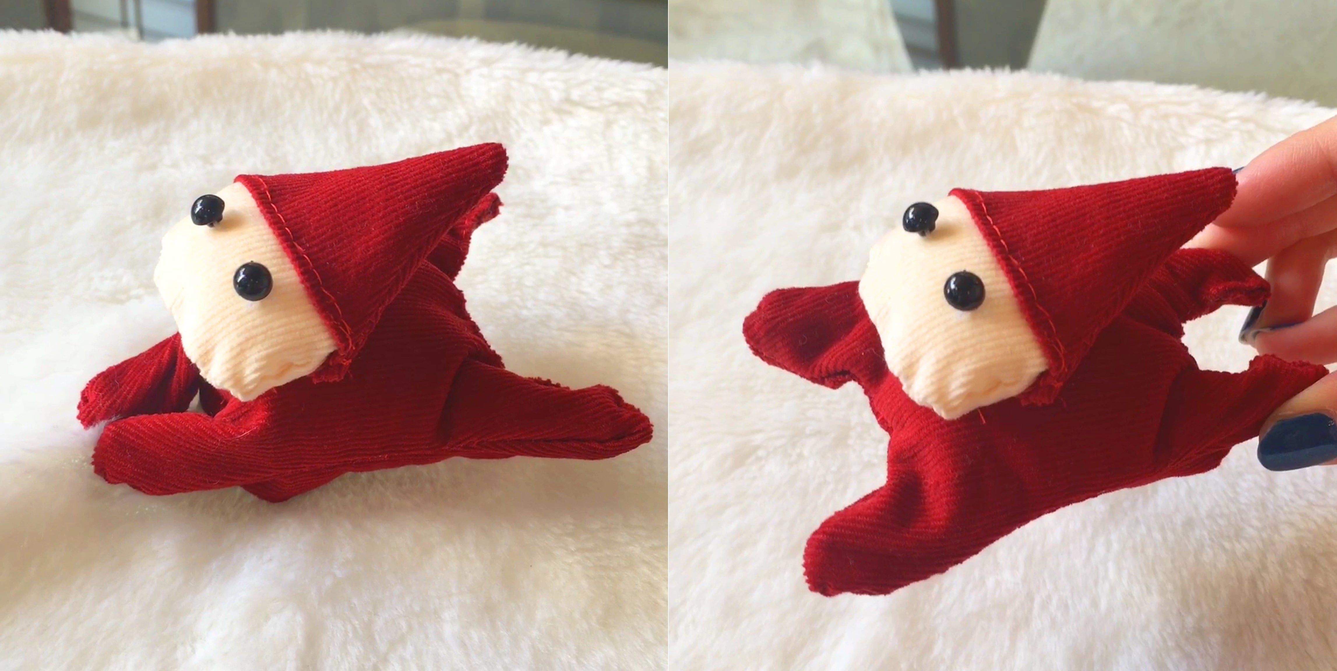 洗濯ばさみをぬいぐるみのように覆い、かわいいインテリア雑貨に生まれ変わりました。