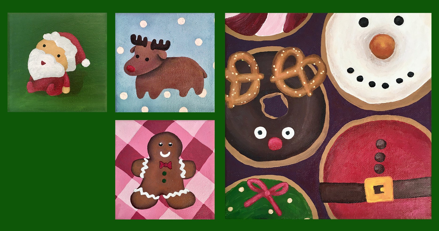 クリスマスドーナツのキャンバス原画。アクリル絵の具。(サイズ180×180mm)