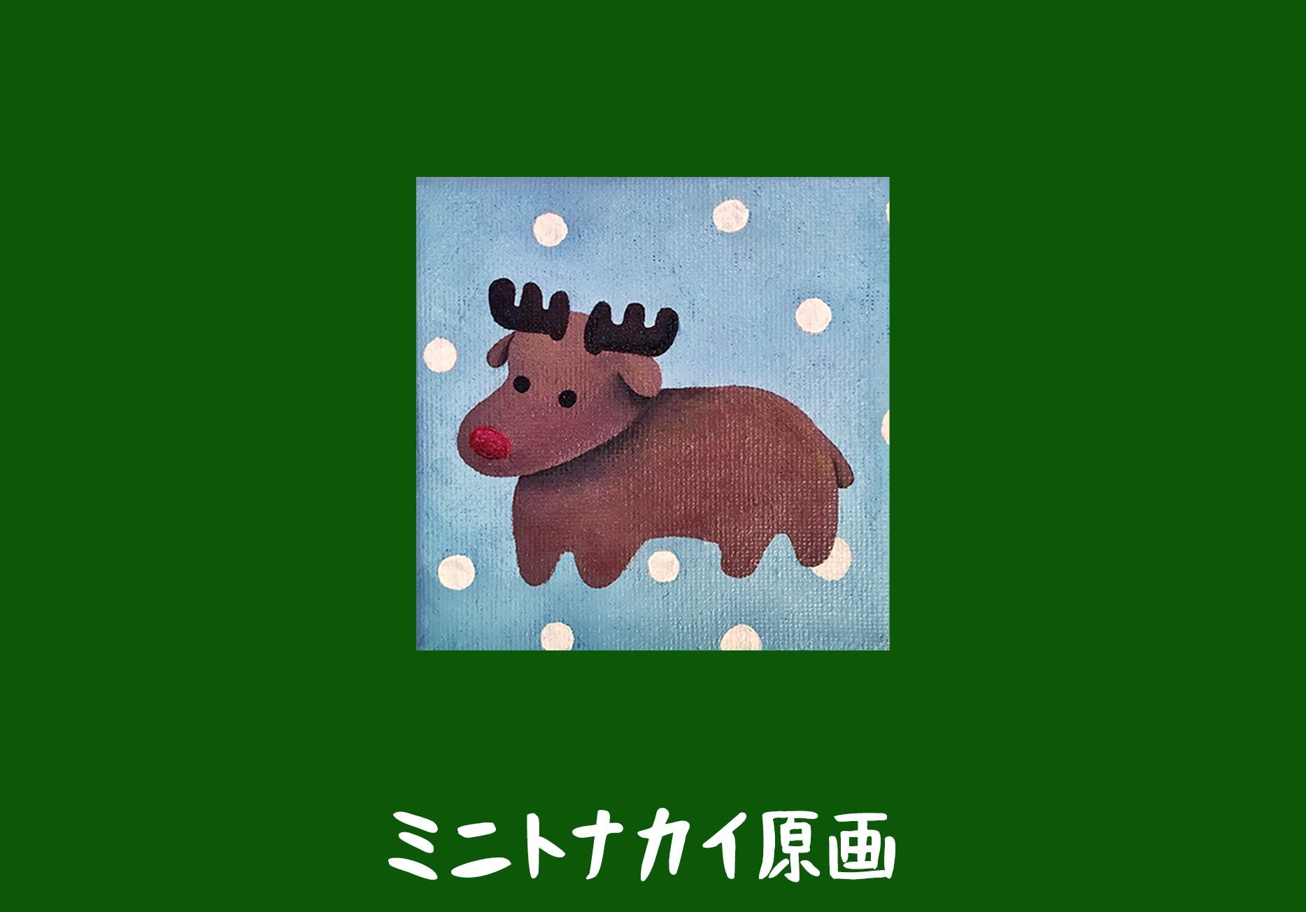 ミニトナカイのキャンバス原画。アクリル絵の具。(サイズ100×100mm)