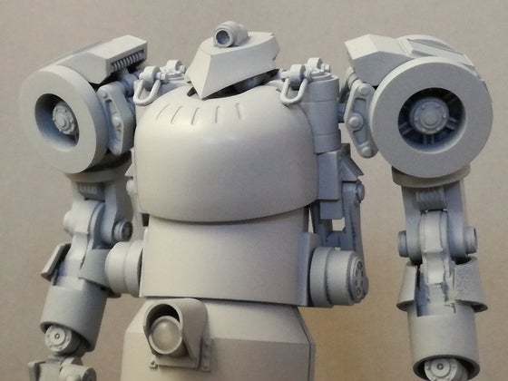 お待たせしました、いよいよテストショットが出来てきました! 更新が遅くなりまして申し訳ございません。 そしてお待たせしました。待望のテストショットが出来てきました。 先ずは組んでみましたので、写真をご覧ください。 いかがでしょう。 正直言ってやり過ぎた感じもなくはありませんが、ハッキリ言って出来過ぎの内容です。もはや原型よりもカッコ良くなっています。 そして… 関節は全て可動します。しかも専用ポリキャップも作成しましたので可動部がヘタることもありません。 ですので… 片膝をついたポーズやライフルを両手で構えるポーズも自然に決まります。 特にライフルを構えるポーズは地味に手首の関節が重要だったりしますが、このキットに関しては全く問題はありません。手首だけで三重関節になってるとか、ちょっと異常としか思えません。(※サンプルのライフルは銃口の穴あけ加工のみ追加で行っております) そしてさらには… サイドフレームが可動することでコクピットハッチをオープンにすることが可能です。 さすがに操縦室内部は再現していませんが、そこは是非追加工作で作成してみてください。 現在の進捗状況としては各パーツの嵌合を再調整しつつ、量産体制の確立を図っているところです。 ここに掲載したテストショットは秋葉原のイエローサブマリン様に展示してありますので、お近くの方は是非現物をその目で確認してみてください。 それでは今後とも「世界中でここにしかない完全オリジナルロボットをインジェクションプラキットに!」プロジェクトをどうぞよろしくお願いします。
