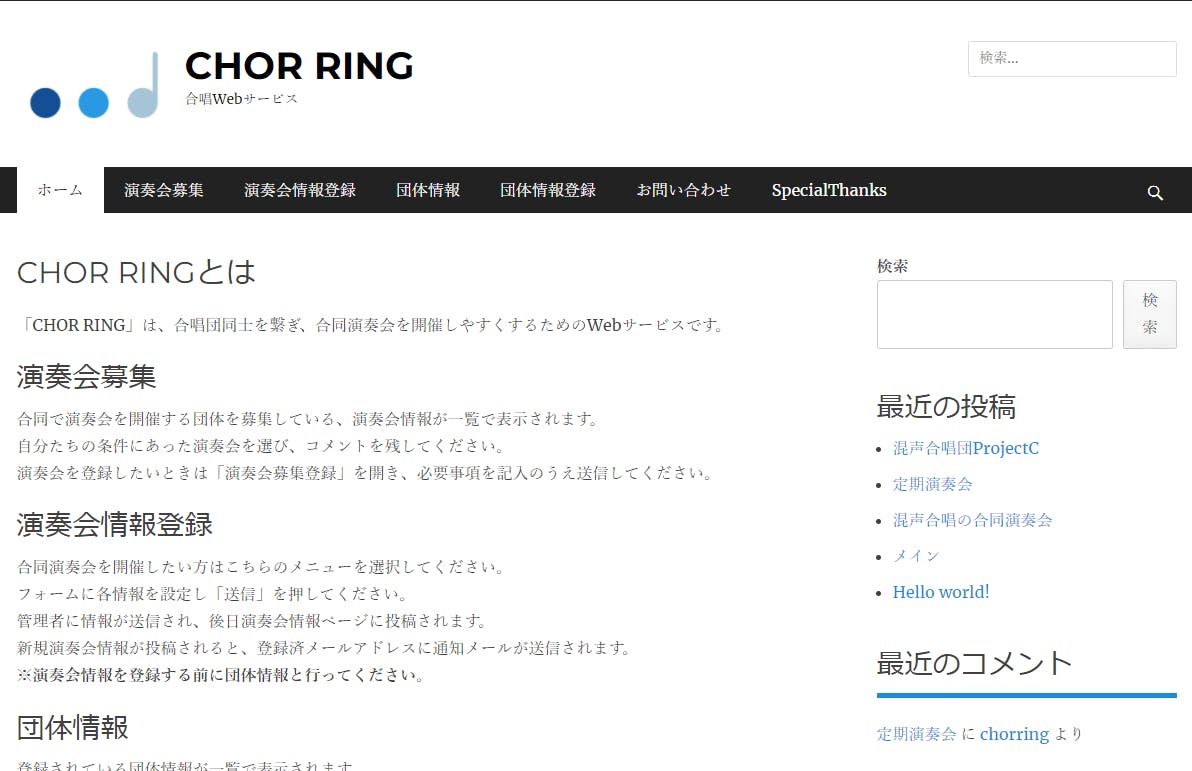 CHOR RINGの変更箇所をご紹介します。 プロジェクト本文中でも「開発中のため画面イメージは変更となる可能性があります。」としていましたが、前回、前々回に引き続き今回も変更点をこちらでご紹介いたします。通知機能サムネ画面にあります通知機能について。演奏会情報が新規投稿されると、登録されたメールアドレスに通知メールが自動送信されます。メール本文には演奏会名と、投稿された演奏会情報ページのURLが記載されています。本文内容はシンプルにし、見やすさを重視しました。また、CHOR RINGの公式Twitterアカウントを開設いたしました。こちらは演奏会情報と、団体情報がそれぞれ新規投稿されると、自動でツイート投稿いたします。タイムラグがありますが、フォローしておけばTwitter上でも情報を得ることができます。SpecialThanksページこちらは大きな変更点はございません。支援者様の数によりもしかしたら使用する画像は変更するかもしれませんが、今のところはこのフレームを使用する予定です。募集終了まであと『2日』!!あと『2日』です!!いよいよ期限がせまってきました。わたしも最後まで気を抜かずやりとげます!