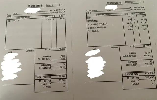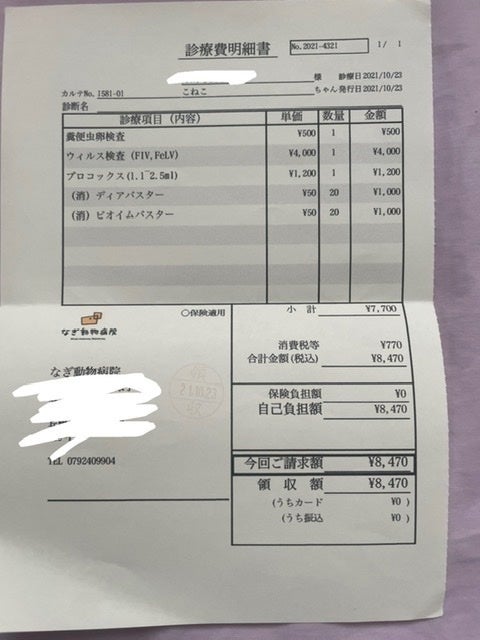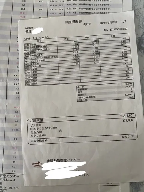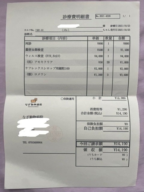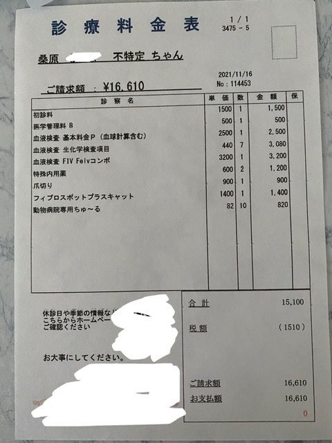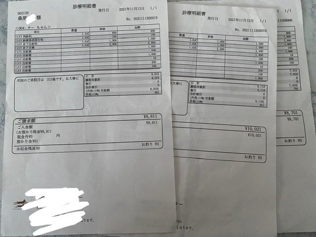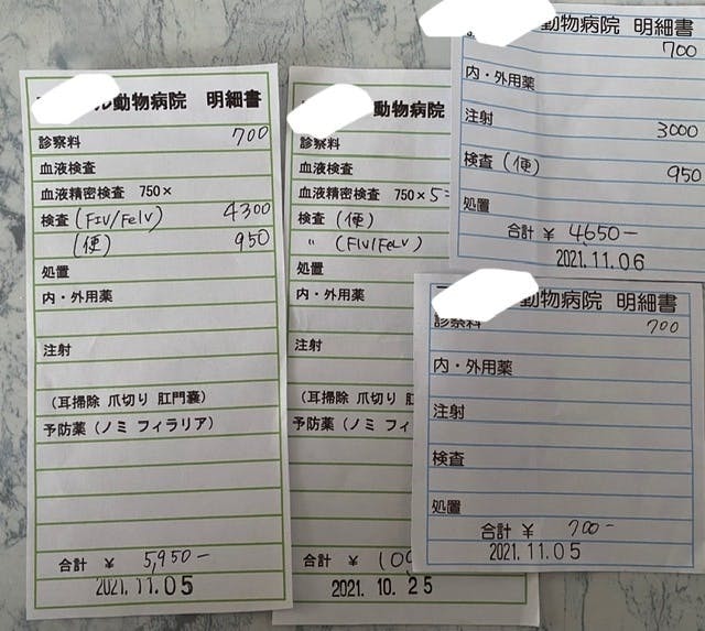継続的な治療費 (猫風邪、インターフェロン2000×7本、点滴投薬)