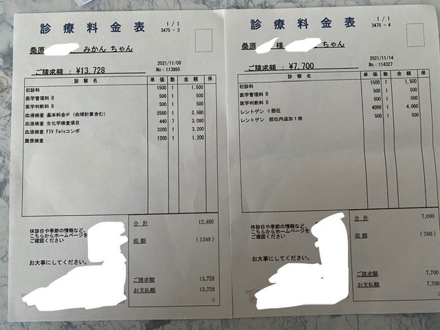 保護した子達にかかった医療費の一部になります⬇️