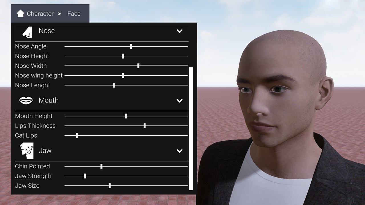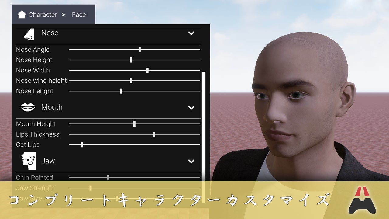 - キャラクター(アバター)のカストマイズ (顔の表情、筋肉、身長)