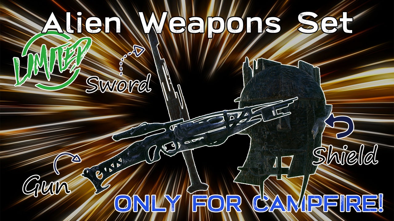 ・ x2 ゲーム内の限定アイテム (SF ビンテージ武器セット + UFO マザーシップ)