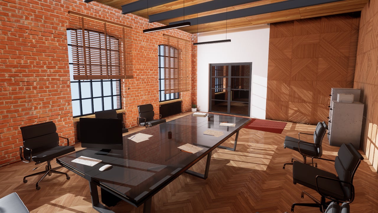 会議室に入ると、チームとプライベートミーティングを行うことができ、VR機能を使用して、ホワイトボードにリアルタイムで書き込みや描画を行うことが出来ます。