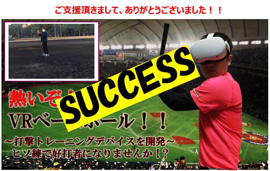 2022/02/03 19:272月1日をもちまして、人生初のクラウドファンディングが終了しました!皆さまの御支援、サポート頂きましたお陰でサクセスする事が出来ました!!ご支援いただいた皆様、お気に入りをしていただいた方々、ページをご覧になったりシェアしていただいた方々、手厚いサポートをしていただいた方々、本当にありがとうございます。ご支援いただけたことはもちろんのこと、沢山の応援の言葉に励まされ、ここまで突き進むことが出来ました。クラウドファンディングは終了しましたが、これからがスタート&本番だと思っております。これからはリリースに向けて『VRベースボール』新機能をアップデートをしつつ、リターンの準備に努めてまいります。引き続き、宜しくお願い致します! もっと見る
