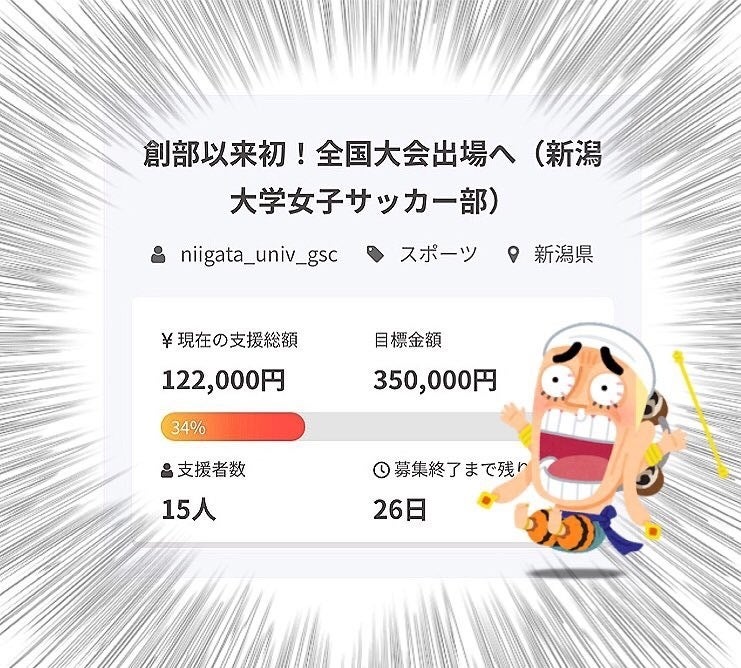 初日で、クラウドファンディングの支援金が目標金額の34%を達成しました!