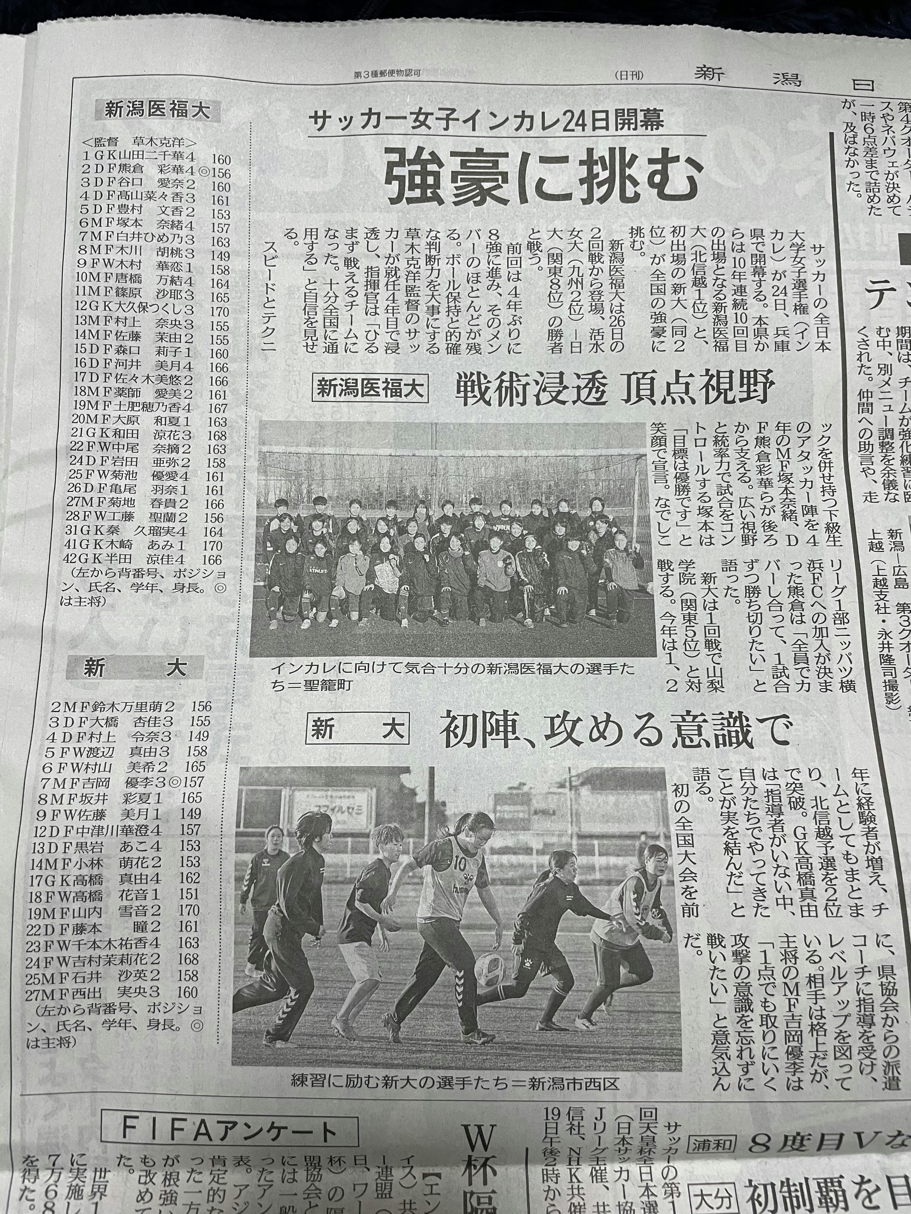 最近新潟はとても寒いですが、体調管理に気をつけながら試合に臨みたいと思います!