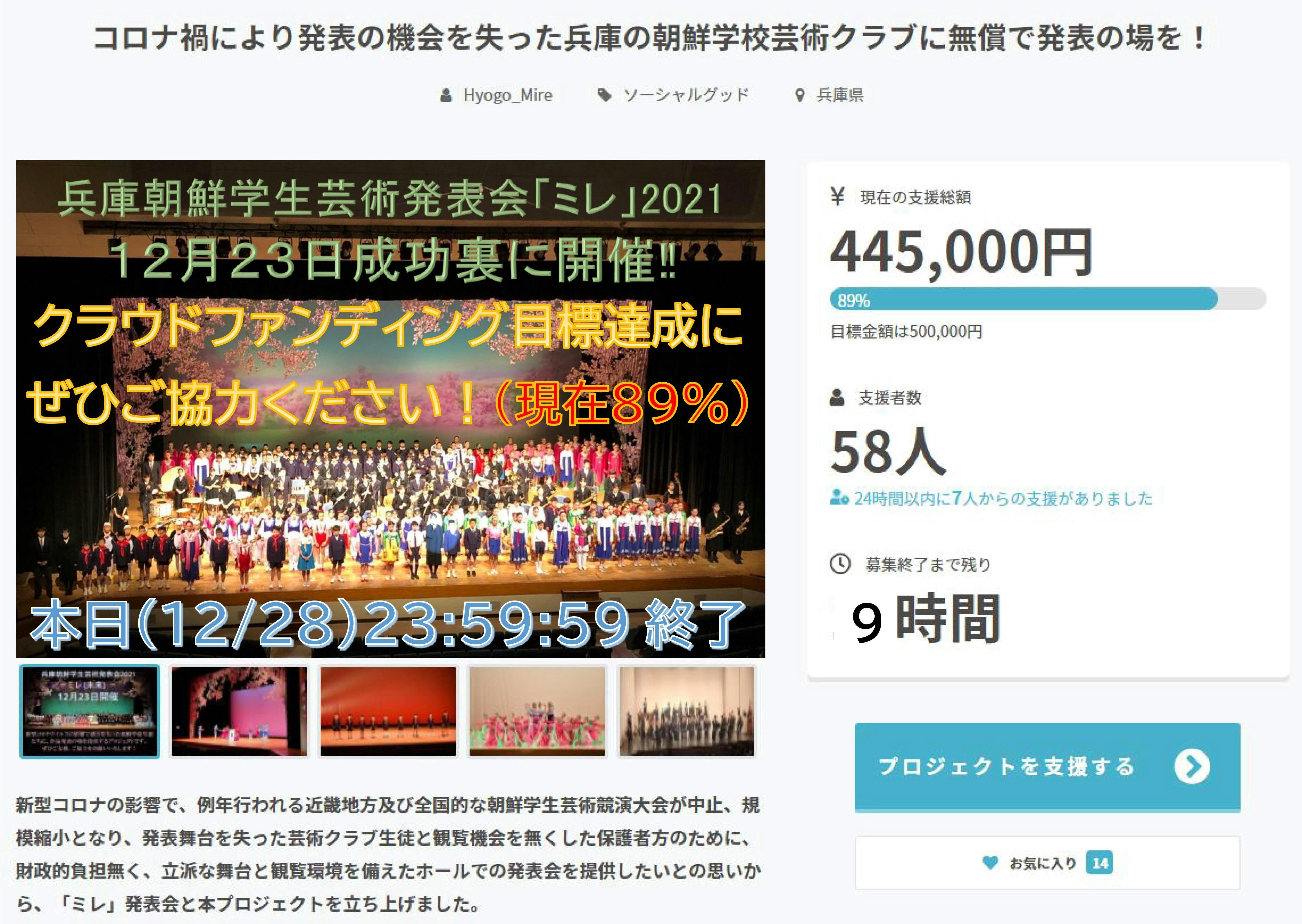 兵庫朝鮮学生芸術発表会「ミレ」2021の成功と、クラウドファンディングの目標達成により、本プロジェクトの成功となります。