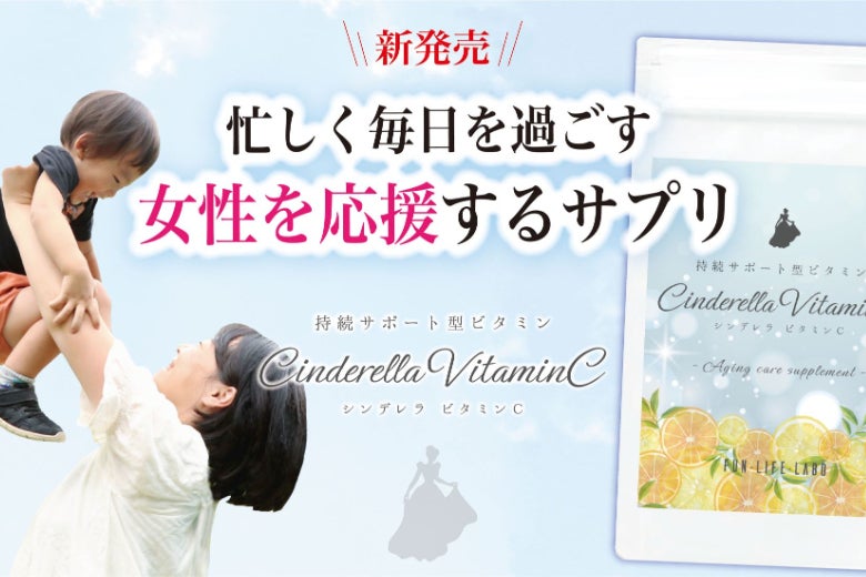 いくら時代が進化したとはいえ、家の中で女性がしなければいけないことは多くあります。仕事をこなし、家事もこなし、育児までこなす女性にとって、身体のメンテナンスをしなければいけないことはわかっていても、忙しい毎日の中でどうしても自分のケアは優先順位が下がってしまうというのが現状です。ただ、忙しくてもやはり女性であれば、「いつでも、いくつになっても美しくありたい」という思いは誰しもが持っています。そんな毎日頑張っている女性をサポートしたいという願いを込めて作られたのがエイジングケアサプリ「持続サポート型ビタミン シンデレラビタミンC」 です。