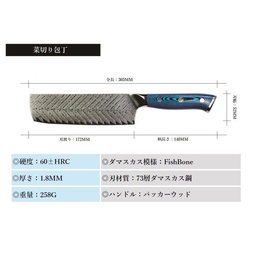 A. 1年のメーカー保証がございます。刃にゆがみがある、刃に傷がある、ハンドル部分に不具合があるなどの初期不良がある場合に新しいものと交換いたします。ただし、ダマスカスナイフは1本ずつ模様が異なりますので、模様が写真と違うとの理由での交換はいたしかねます。