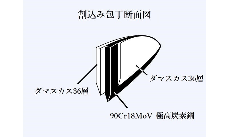 包丁の切れ味を左右する芯材には『90Cr18MoV』を採用。