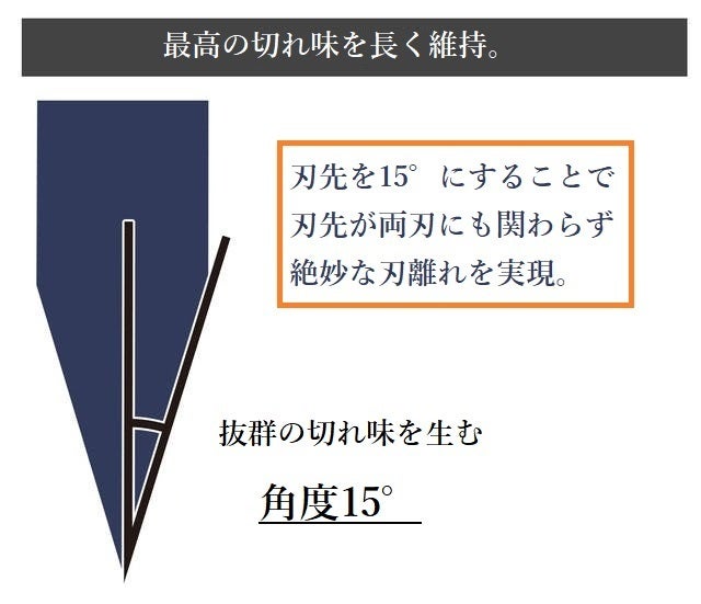 さらに刃の角度は最も切れ味が増す15°の角度で手研ぎにて研磨しています。