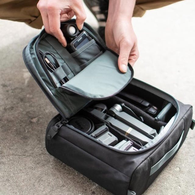 カメラバッグの内部には、仕切り付きのメイン収納だけでなく、小物スペースも完備し、カメラバッグ単体でも十分ご使用いただけます。