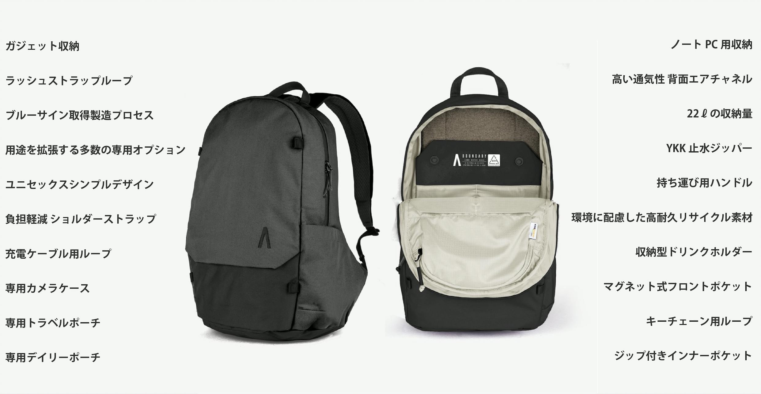 豊富な機能を実装し、収納量はデイリーユースから小旅行まで対応可能な22リットル。