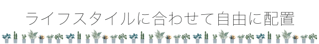 選んだ植物に合わせて拡大・縮小、数や向き、デザインも思いのまま。床置きや壁に沿った配置もOKです。ライフスタイルに合わせて、身近に緑がある暮らしを実現いたします。