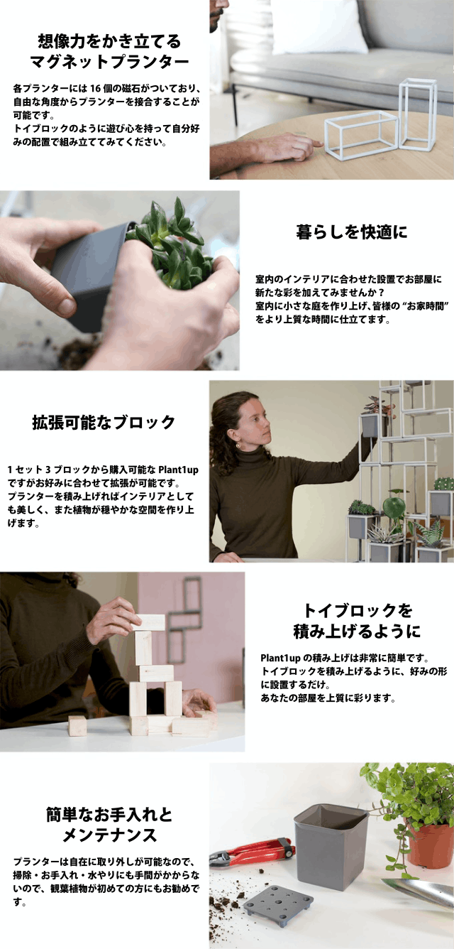 組立・移動・栽培・水やり・お手入れは簡単。ブロックトイのように簡単に構築して多肉植物・ハーブ・観葉植物を室内でお楽しみいただけます。