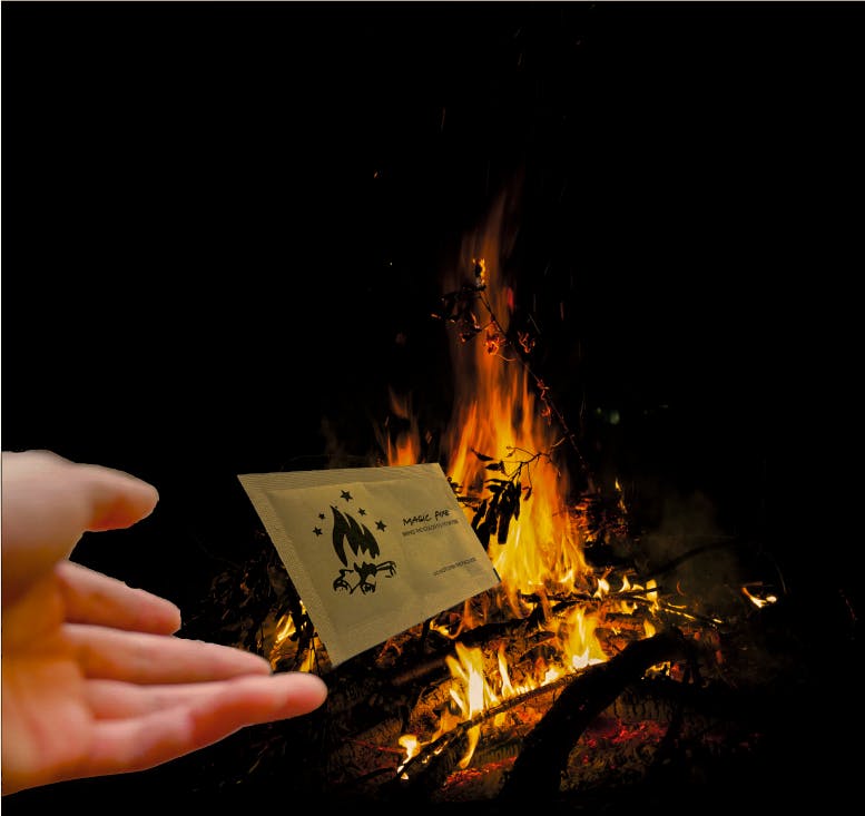 ● 開けずに袋ごと焚き火に投げ入れ2m以上離れて使用してください
