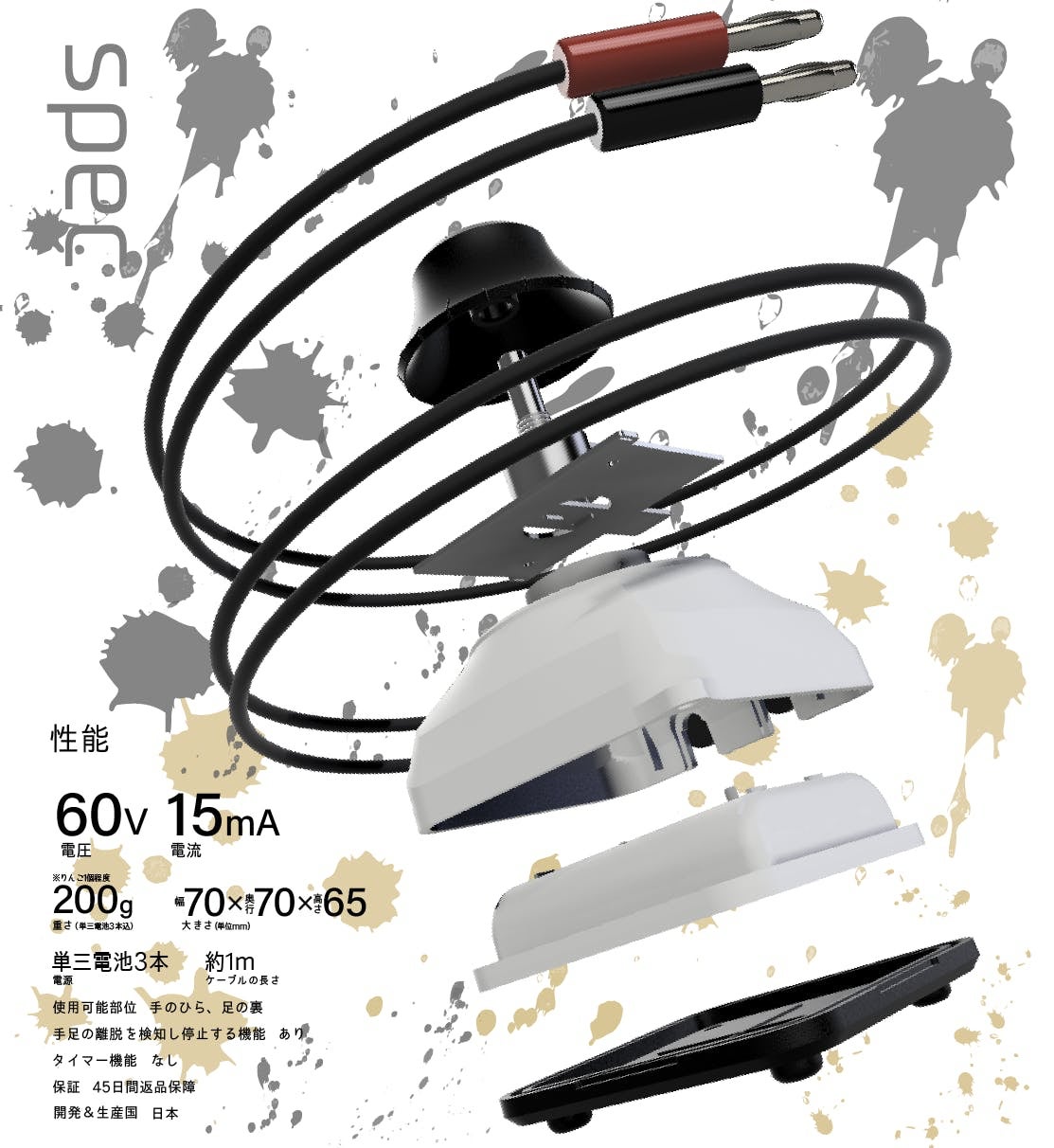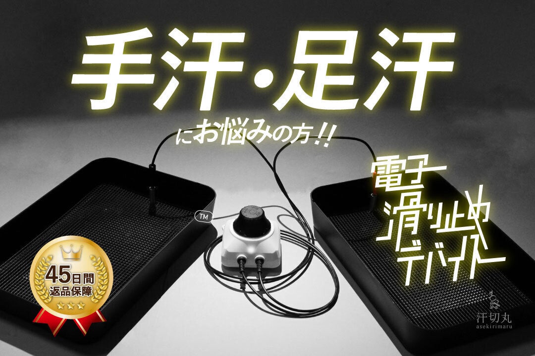 電気を体に流すのは怖い・・・よく聞くご意見です! 汗切丸は「乾電池3本」で動作します。危険な家庭用コンセント(100V)での感電事故を根本的に防止。万一の事故も未然に防ぎます。