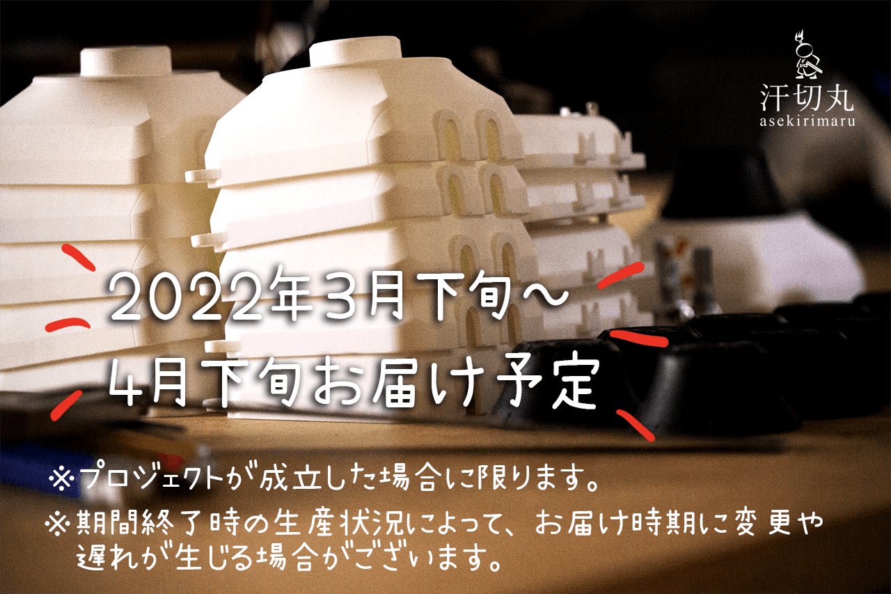プロジェクトが成立した場合、2022年3月下旬~4月下旬を目処としたご支援順のお届けを予定しています。クラウドファンディングではプロジェクト終了後に生産個数が確定となります。そのため、期間終了時の生産状況によって、お届け時期に変更や遅れが生じる場合がございます。恐れ入りますが、予めご了承下さい。お届け時期に変動が生じる場合は、随時「活動報告」を通してご報告させていただきます。