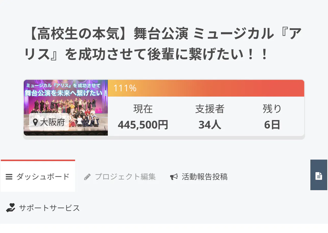 公演終了後も1週間ほど期間を設けておりますので、ぜひ温かなご支援よろしくお願い致します。