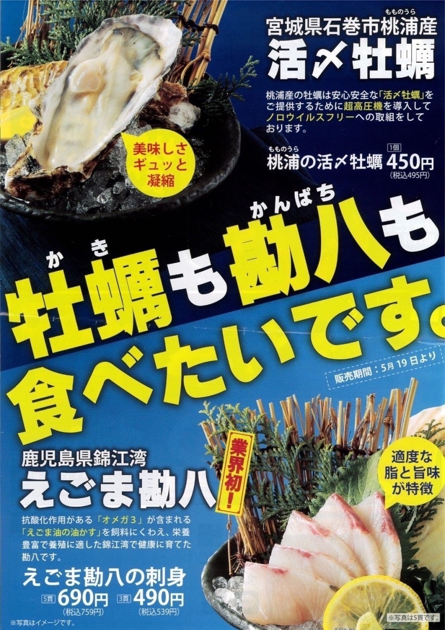 5月19日(木)から牡蠣とカンパチのメニューを期間限定で販売致します(o^^o)