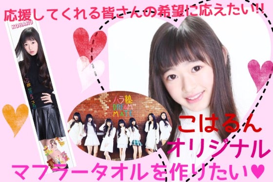 こはるたち、ハラ塾DREAMMATEのライブやイベントに全国から、オリジナルマフラータオルを持って駆けつけてもらえると嬉しいな♡