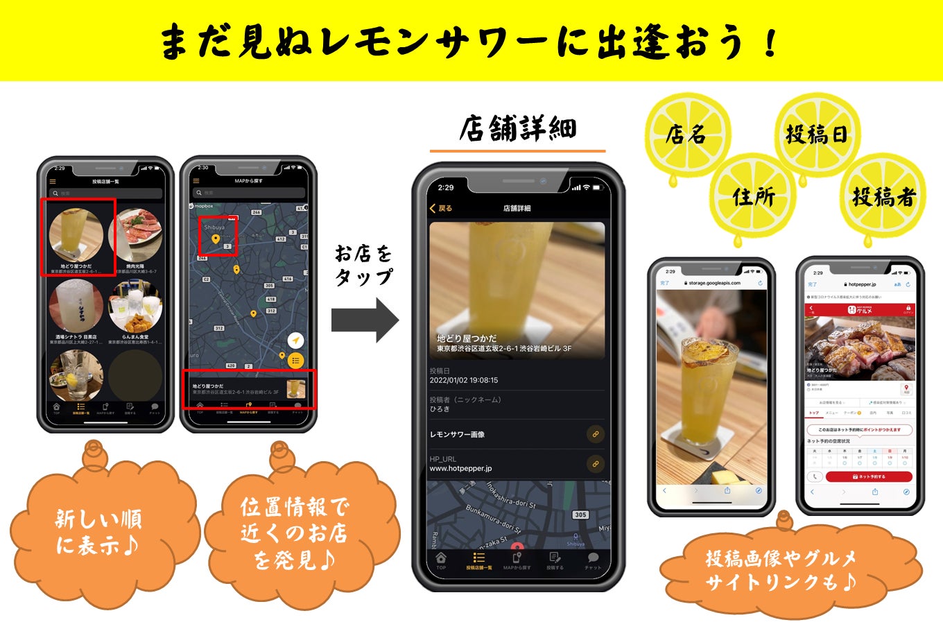 ①投稿されたお店が一目瞭然!まだ見ぬレモンサワーに出逢おう!
