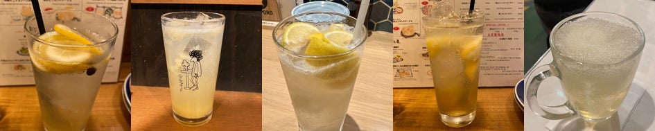 レモンだけでなく、ベースのお酒は基本甲類焼酎ですがジンやウォッカに変えると表情がまるで違います。炭酸水もお店によって瓶・缶・ペットボトル・バーガン(飲食店のドリンク場にある炭酸水を出す機械)と様々あります。