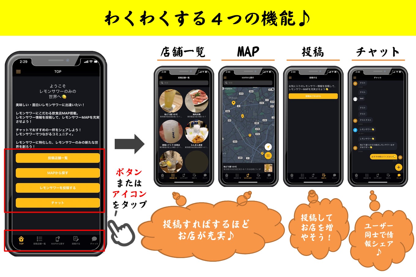 飲食店側が発行する「レモンサワーにまつわるクーポン機能」などなどの進化を構想しています!