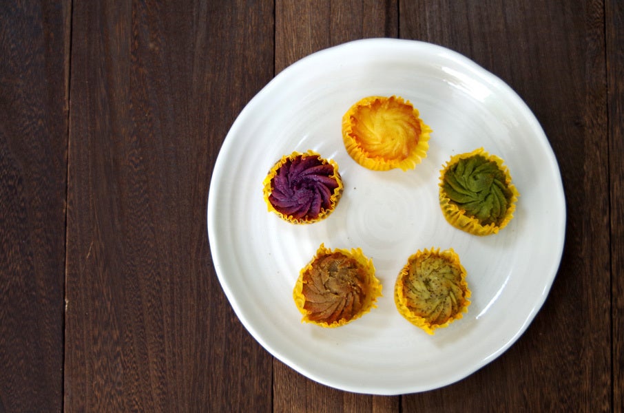 「お百姓さんが作ったスイートポテト (プレーン・むらさき芋・栗・紅茶・宇治抹茶)」×3個(合計15個)&5個(合計25個)をセットにしてリターンいたします。