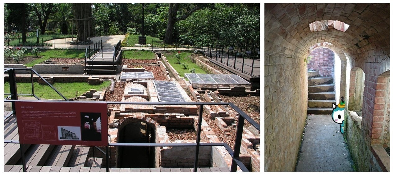 サムエル・コッキング温室遺構は、イギリスの貿易商サムエル・コッキングさんが明治時代に江の島のてっぺんに大庭園をつくったのがはじまりなんだ。当時の温室の規模は、東洋一だったんだって!それにレンガ造りの温室遺構は現存する唯一のもので、文化遺産としても、土木技術の遺産としてもすごく貴重なものなんだよ。