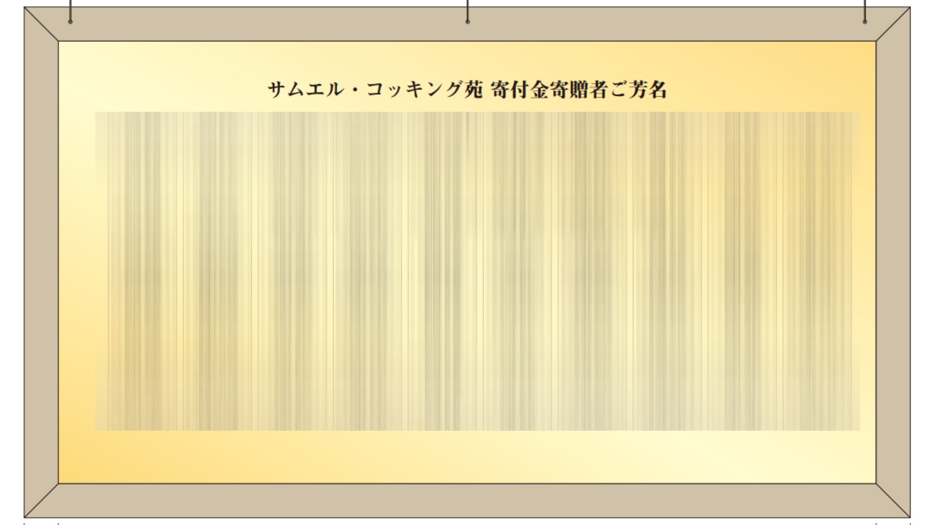 デザインはこのような感じで、2枚作るんだけど、木枠の中に、真鍮に近いデザインの銘板に、みんなのお名前を刻むんだよ(^^♪