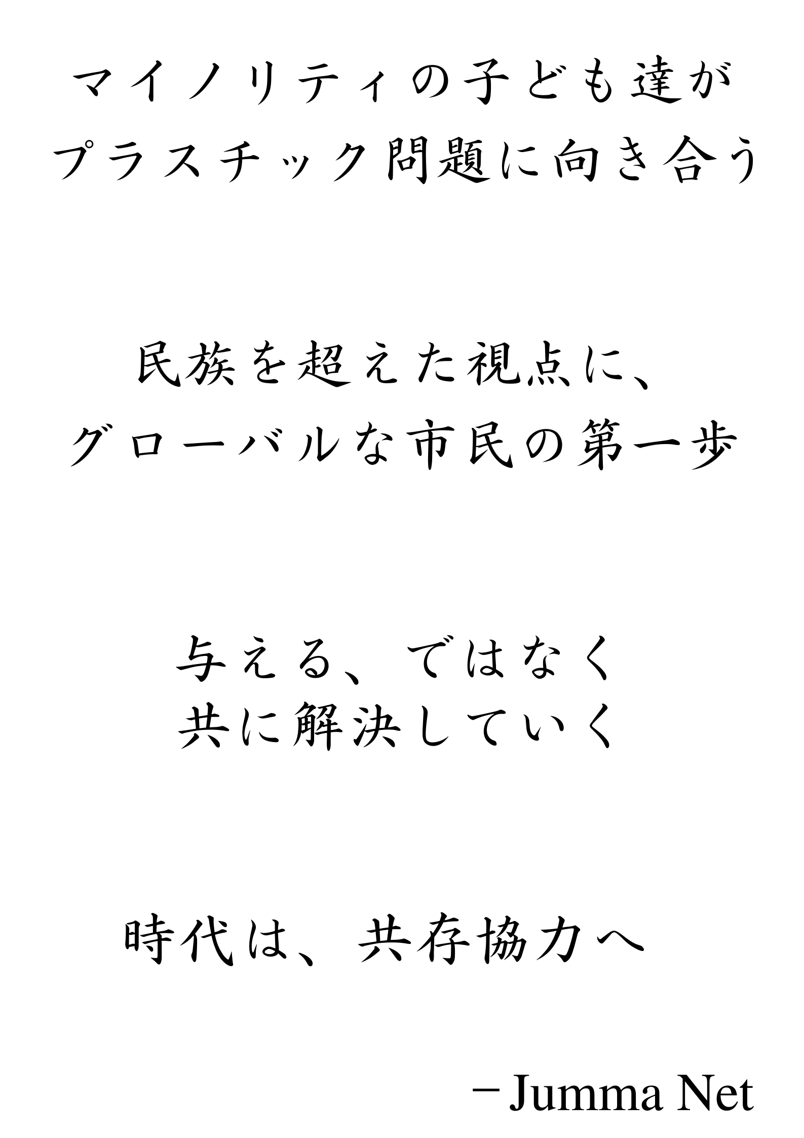 そこで今回のプロジェクトを通して、これまでジュマ・ネットが支援してきた戦争被害を受けたマイノリティの子ども達がこうしたグローバルな課題を先進的に学ぶ場にしていこうと考えています。戦争被害を受けた子ども達がグローバルな視野を持つ市民として、誰にでも平等に襲いかかる対等な課題に目を向けることは、広い視野で将来を見据えていく上できっと大きなヒントになるでしょう。