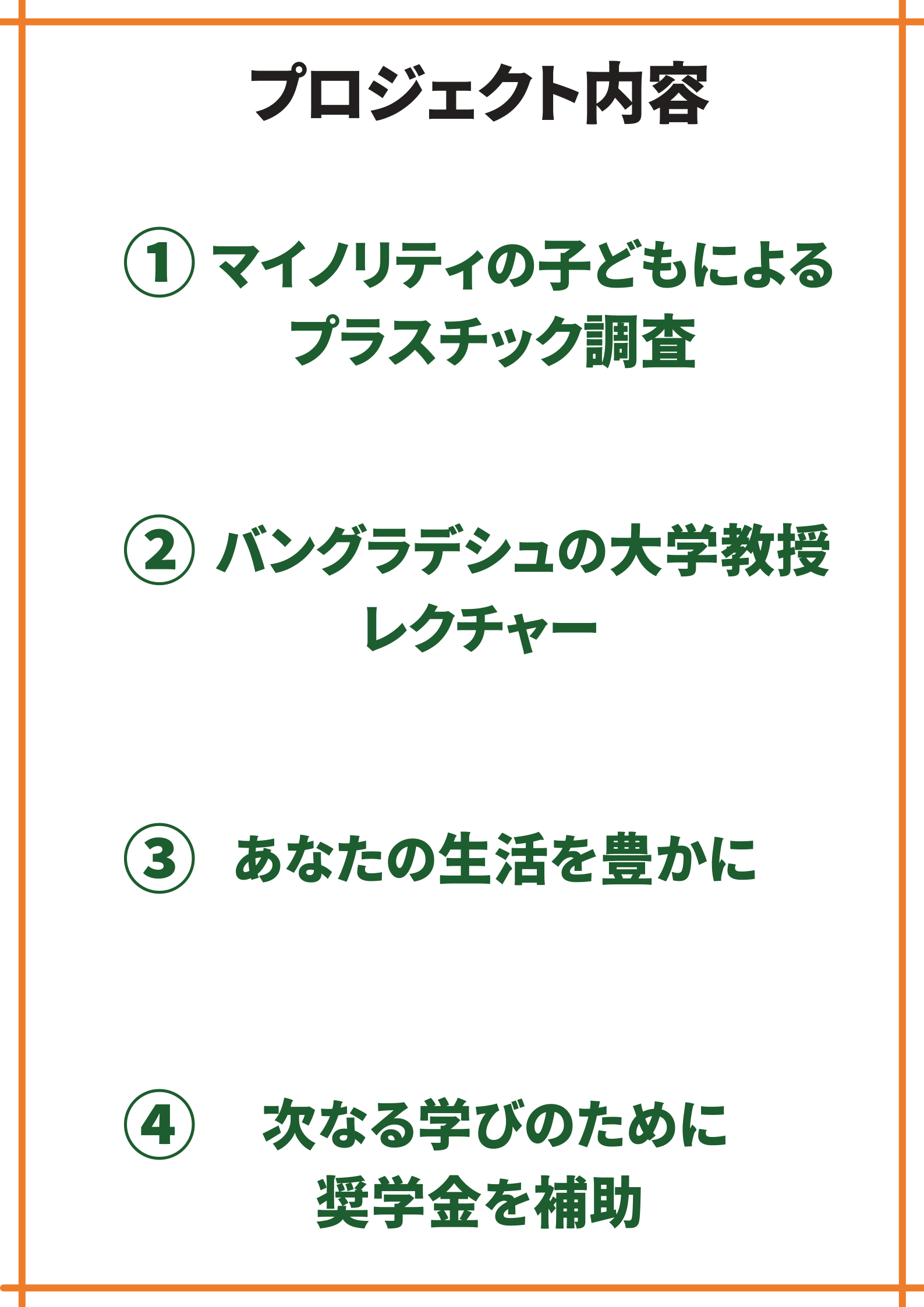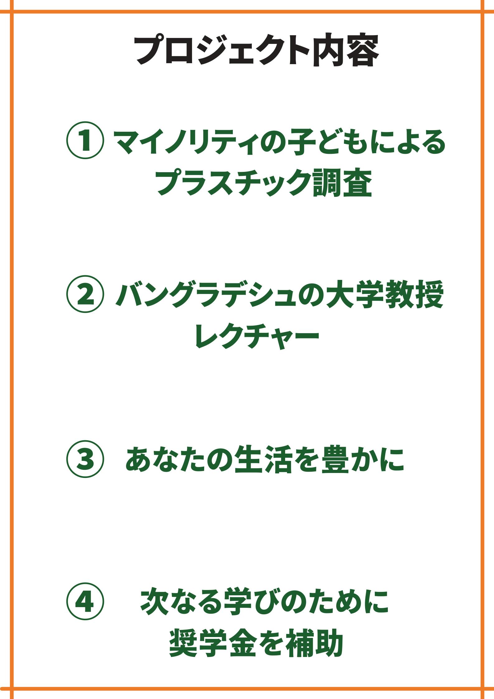バングラデシュ現地の大学教授によるプラスチックの講義を実施いただきます。こちらはリターンとして受講を選択することができます。