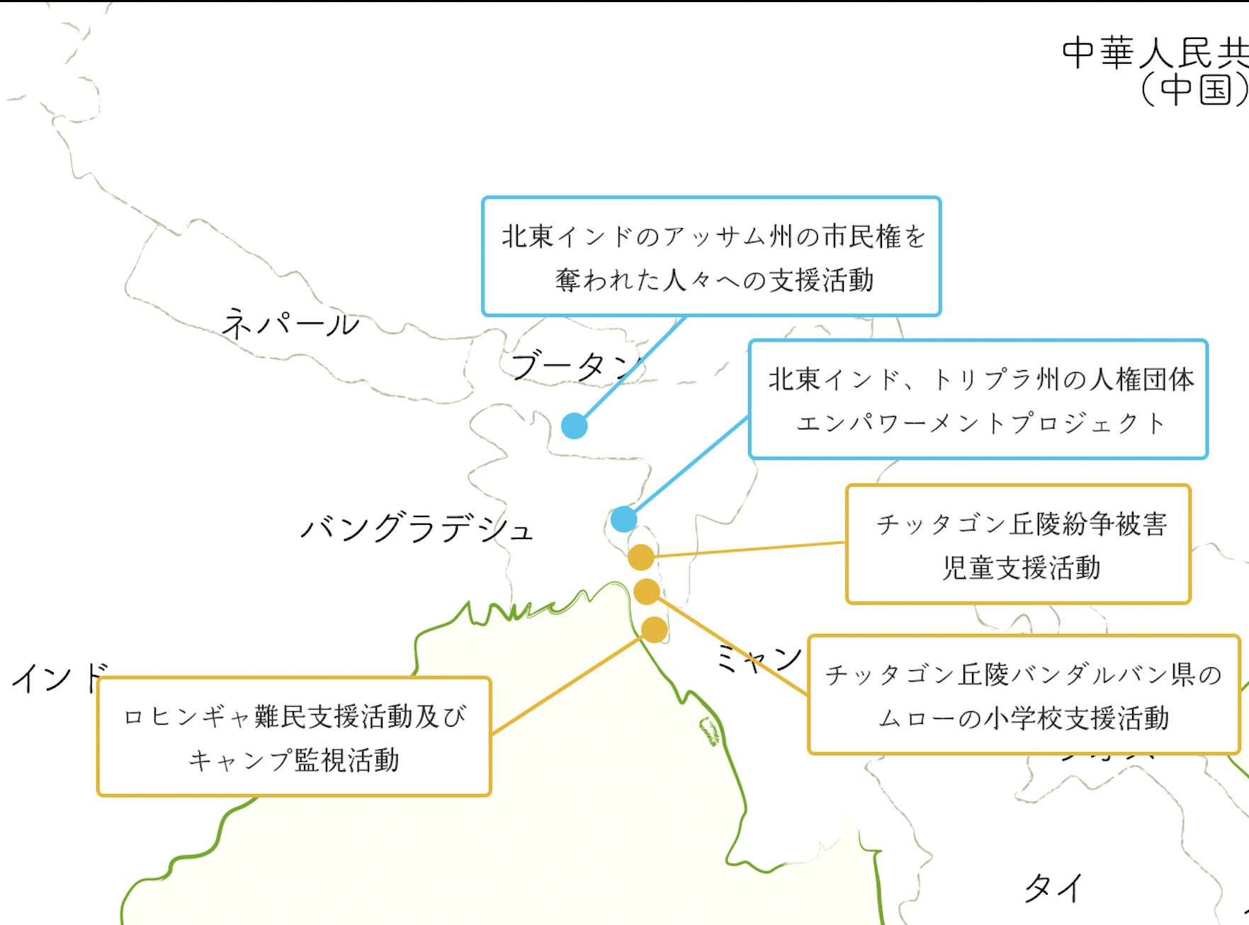 このプロジェクトの特徴として大きなことは、「マイノリティ」にフォーカスを当てていることです。これまで、ジュマ・ネットが活動してきたチッタゴン丘陵地帯は政府からの抑圧、入植ベンガル人との対立、さらには内部分裂など、簡単には解決に至っていません。そうした中で、民族としてのアイデンティティが政治ツールへと用いられる現象は、同時に異なる者の排除を先鋭化させてきました。それが再び暴力を生むという負の連鎖が発生してきました。
