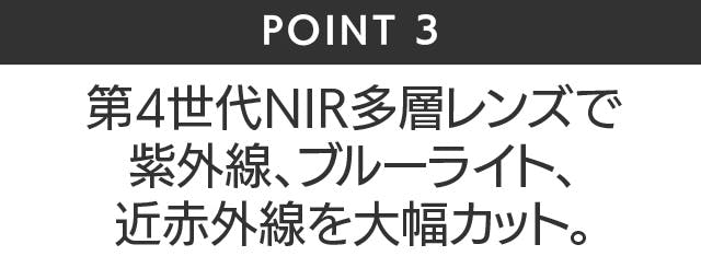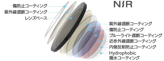 さらに3大有害光線をカットする第4世代NIR多層レンズを採用。